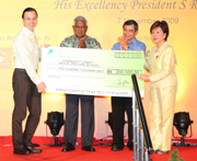 Tan Tong Hai presenting the donation at the event graced by Singapore President, Mr
